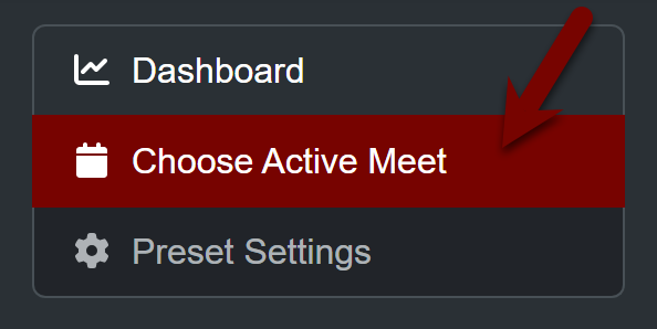 After starting AthleticLOCAL, select Choose Active Meet in the sidebar, and then select the meet you're configuring from the dropdown list on the subsequent page.