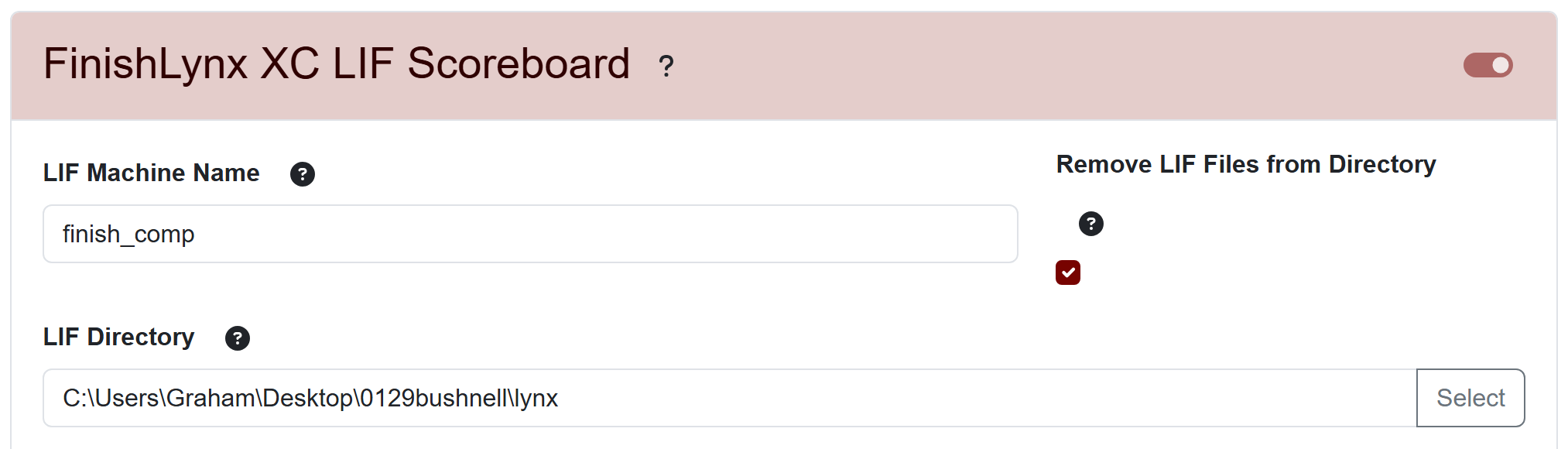 - On the Choose Active Meet page, locate the FinishLynx XC LIF Scoreboard section.