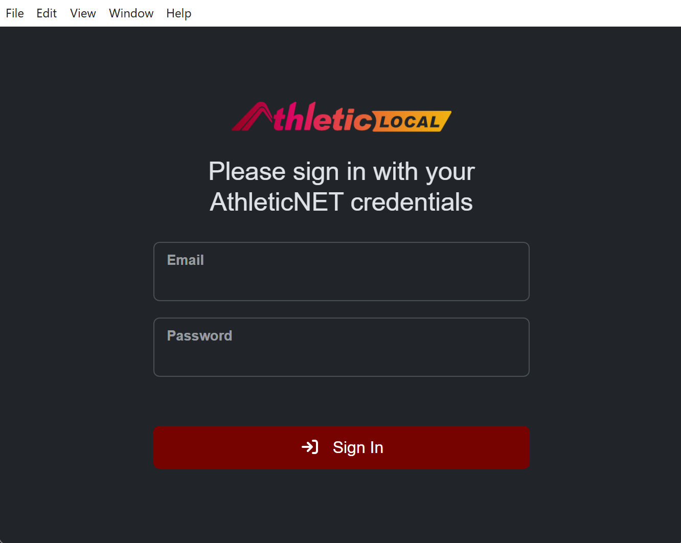 Download the AthleticLOCAL installer and follow the prompts to install the program. Then, open AthleticLOCAL and sign in using your AthleticNET email and password.