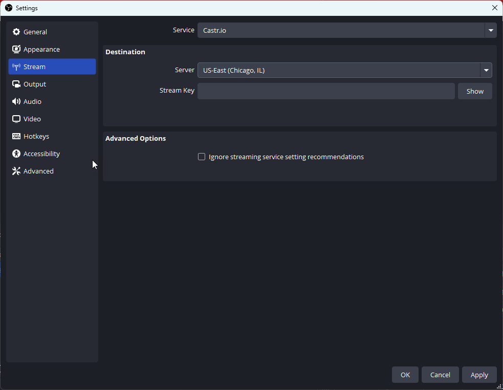 Using OBS to Stream to a Castr Server for Automatic Chopping / Manual Upload