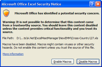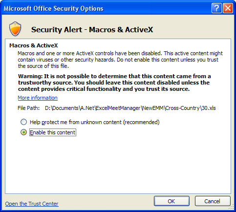If you instead see the see the following dialog after opening the EMMxc, click "Enable Macros."