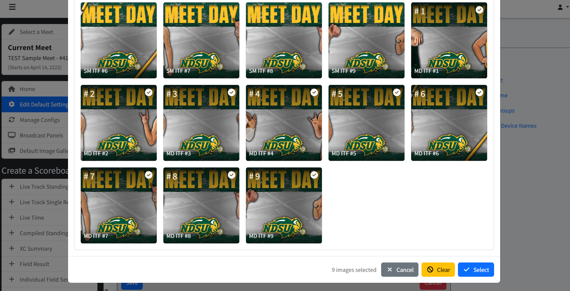 - To use online images, click "Select Images" from the online images section of either Default Settings or Default Layout on a specific board. Navigate to the images you would like to include and click them in the order they should appear. A number will appear in the top left corner that is the order. Click "Clear" to deselect all images or "Select" to choose the current selection.