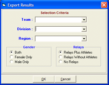 Hy-Tek has an odd way of treating two division meet. Often it is best to export them as HTML results BY DIVISION. So, if you had a two division meet, say Varsity and Junior Varsity, first export only Varsity, and then only Junior Varsity. Unfortunately, this will then print correct BY DIVISION scores at the bottom, but Hy-Tek will put all division scores at the bottom of the Varsity and JV results ... so you have to delete the opposite division's results from that particular upload. Otherwise scoring may not be correct if you use delimited. Just view the HTML in a browser, and copy/paste it to notepad or other plain text editor and then copy paste back into the upload after deleting the opposite division's score. Alternatively and perhaps simpler, only include scores in the first division you print and not in the subsequent division(s) which is done by un-checking all genders under the score section for the "include in results" section for the second division you are including.