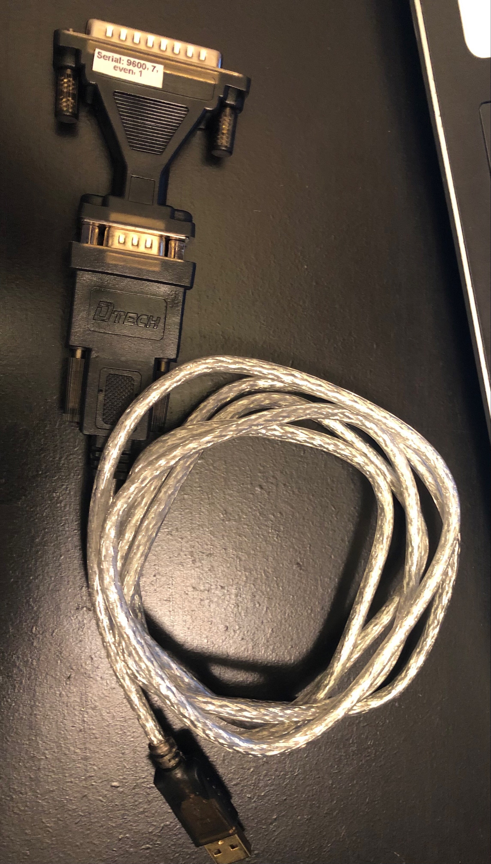 - Plug a 25-pin USB-serial adapter into the back of the AllSport 5000.