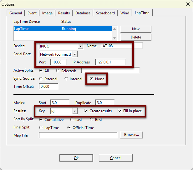 - Set FinishLynx Laptime settings: