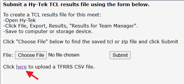 After you have finished downloading your meet file, you may report to DA/TFRRS on your meet page here:
