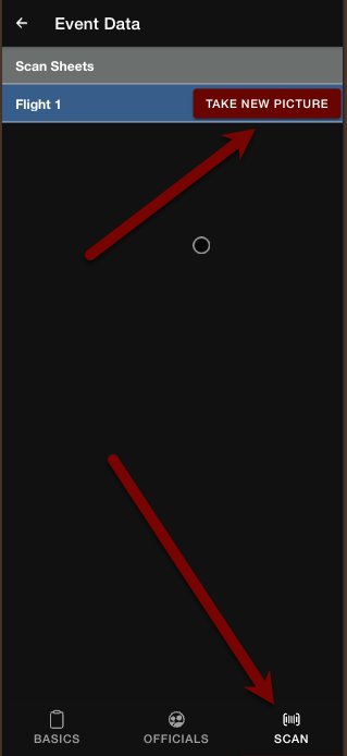 - After a sheet is complete, go to Round Details and click the Scan button. Under the relevant flight, click "Take New Picture".