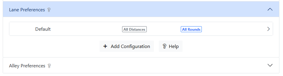 When you open the "Lane Preferences" section, you'll see a "Default" lane preference configuration. If different events or rounds require different lane preferences, you may create additional configurations.